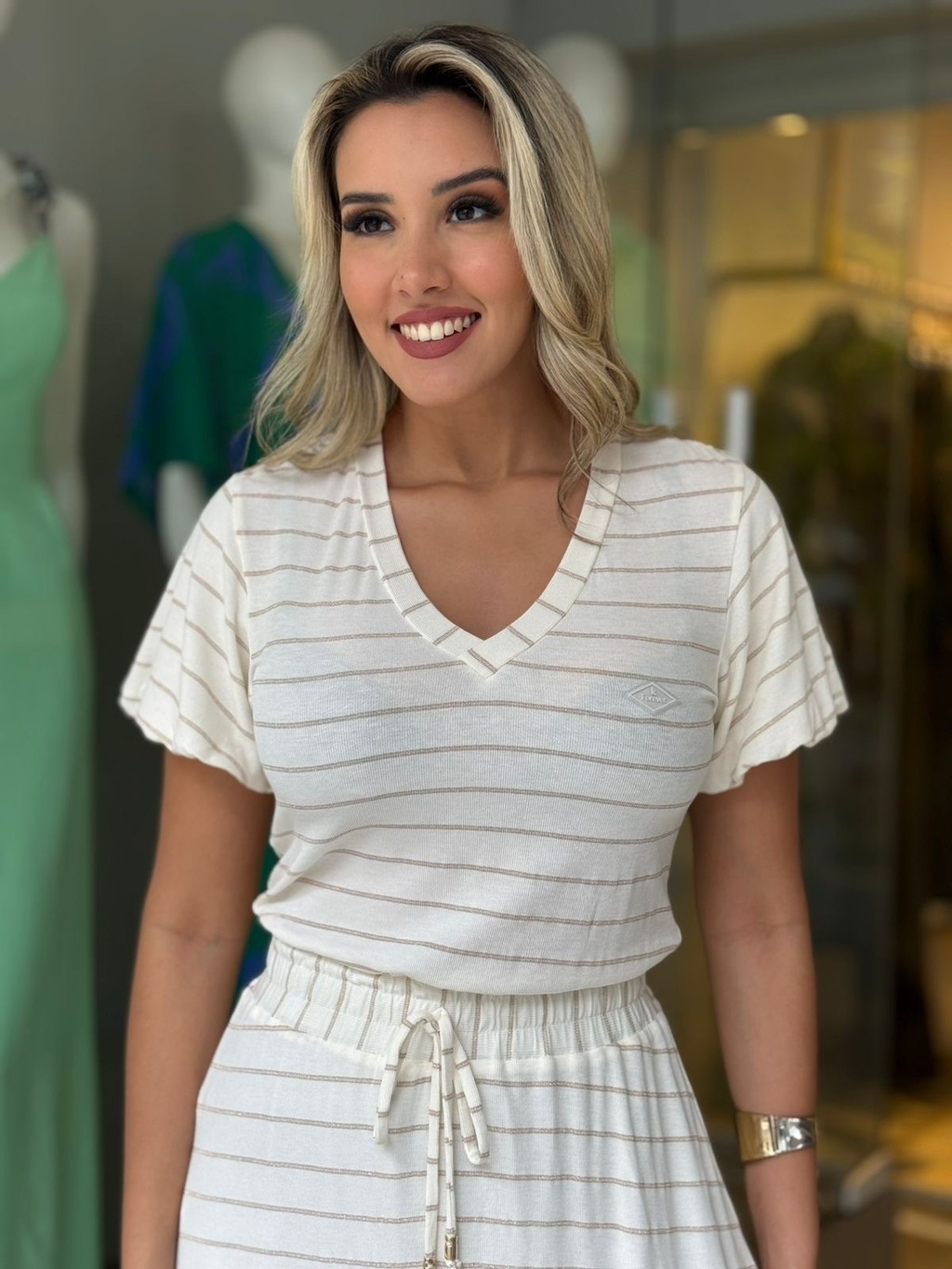 Com aparência delicada e toque extremamente confortável, o vestido traduz um estilo leve e elegante que se adapta a diferentes momentos do dia. A modelagem soltinha, aliada ao caimento fluido, valoriza o corpo de maneira natural, enquanto o decote em ?V? alonga a silhueta e adiciona um toque feminino e sofisticado. O ajuste na cintura com cordão permite personalizar o caimento, equilibrando conforto e forma. As listras sutis trazem movimento e charme atemporal à peça, tornando-a uma escolha certeira para quem busca um visual versátil, refinado e com ar despretensioso, ideal para quem quer estar bem vestida com o mínimo de esforço.